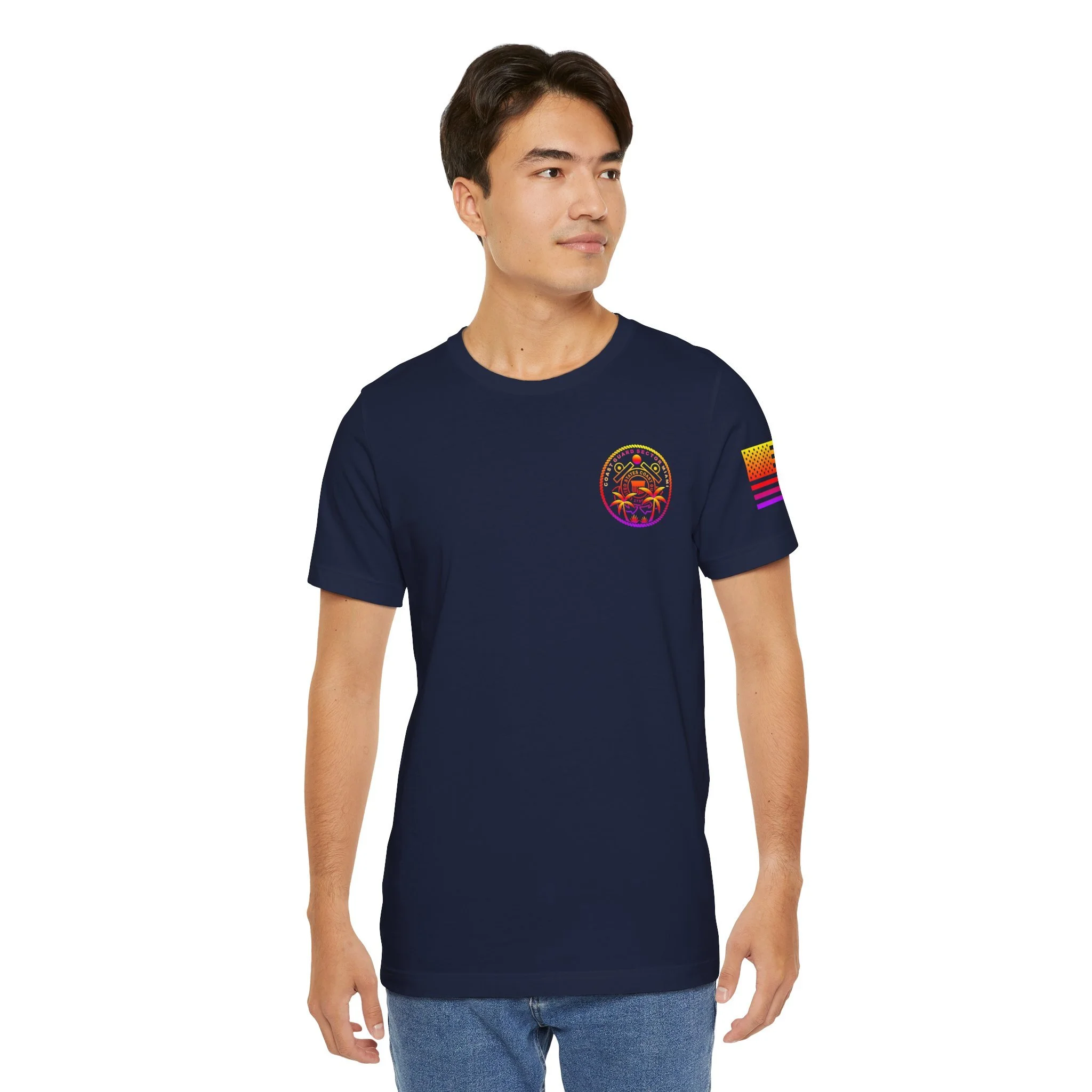 This classic unisex jersey short sleeve tee fits like a well-loved favorite. Soft cotton and quality print make users fall in love with it over and over again. These t-shirts have-ribbed knit collars to bolster shaping. The shoulders are tapered for a better fit over time. Dual side seams hold the garment's shape for longer.